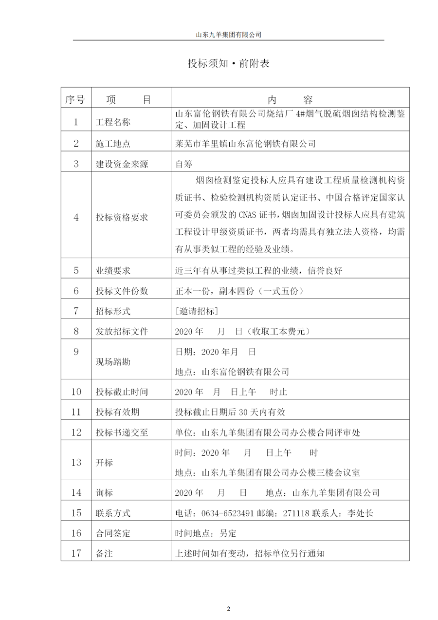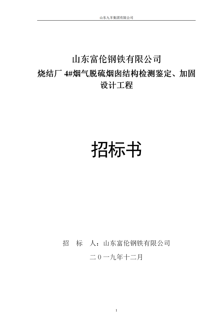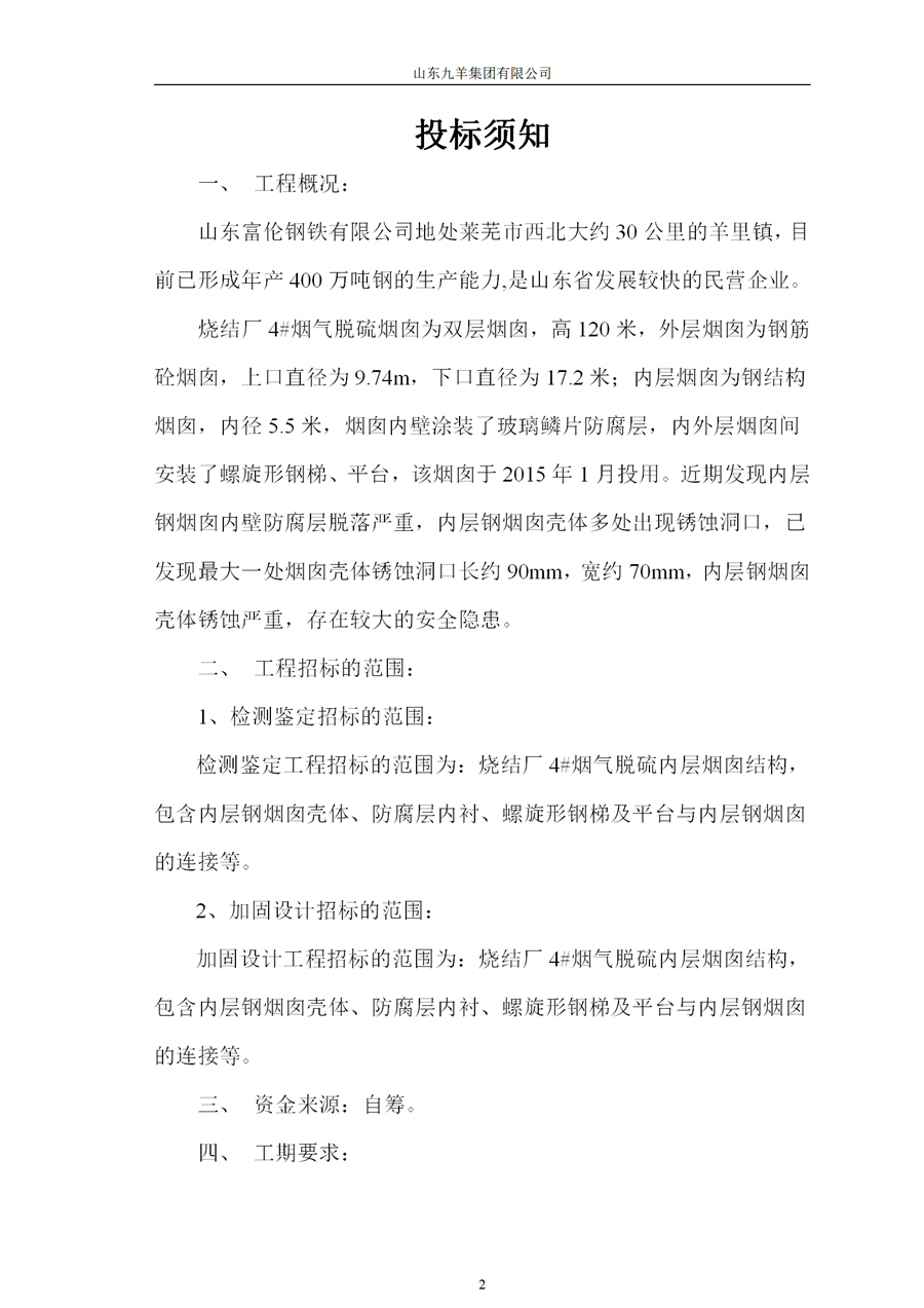 燒結(jié)廠4#煙氣脫硫煙囪結(jié)構(gòu)檢測(cè)鑒定、加固設(shè)計(jì)工程招標(biāo)書