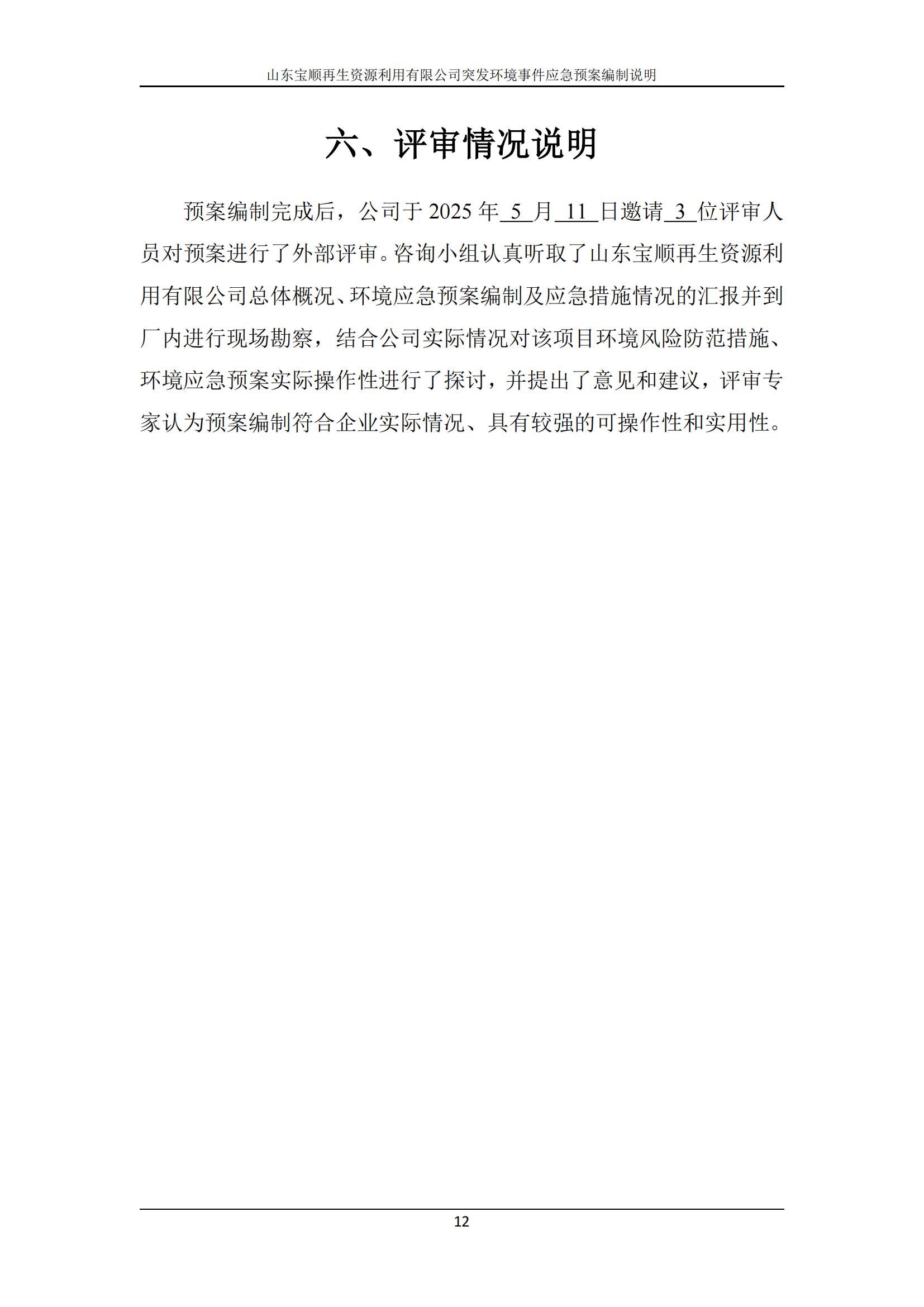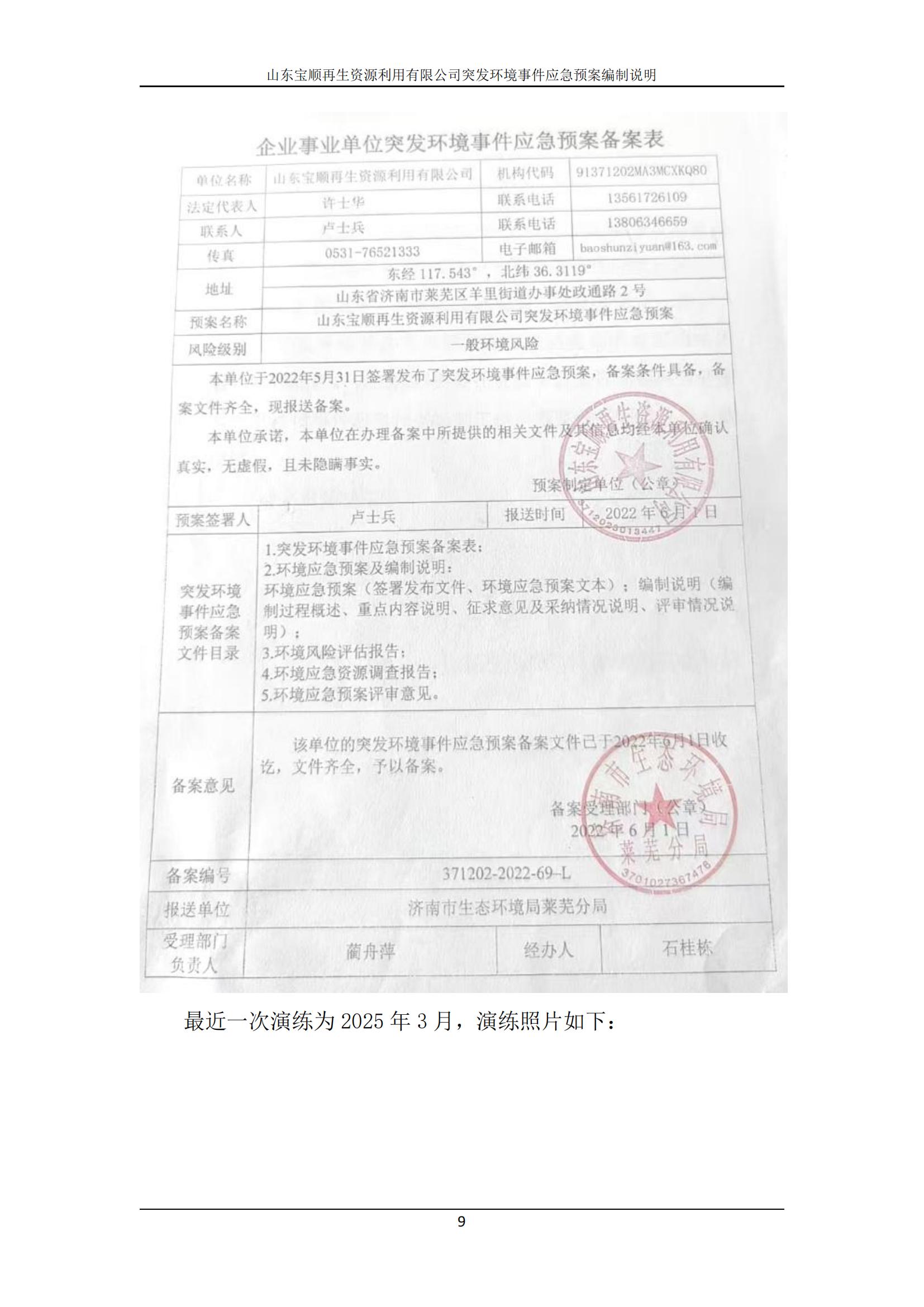 山東寶順再生資源利用有限公司突發(fā)環(huán)境事件應(yīng)急預(yù)案(2025年修訂版)